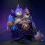 The Pisces Gemini set swaps Ogre's familiar features for an astounding aquatic visage. The left head, with its wide, curious eyes, embodies a serene celestial fish, while its twin snarls with the ferocity of a deep-sea predator, its face illuminated by an inner, fiery light. Their body is clad in armor of deep cosmic blues and purples, fashioned from shimmering scales and accented with regal gold trim. The centerpiece is a custom weapon, a massive club reshaped into a potent celestial fish, its crystalline form radiating a warm, powerful glow.